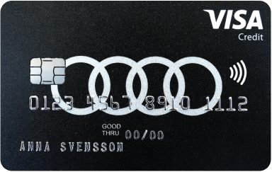 AudiKort Visa är kostnadsfritt och Visa-kopplingen ingår. Kreditkostnad vid räntefritt köp 0 kr.